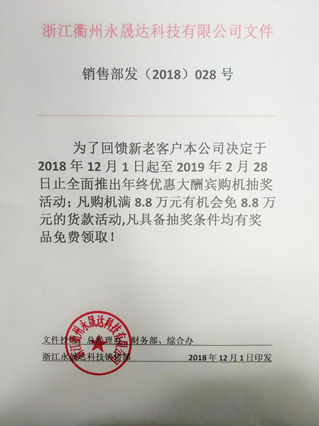 • 永晟達(dá)年終優(yōu)惠大酬賓抽獎(jiǎng)活動(dòng),感恩回饋新老客戶!2018-11-20